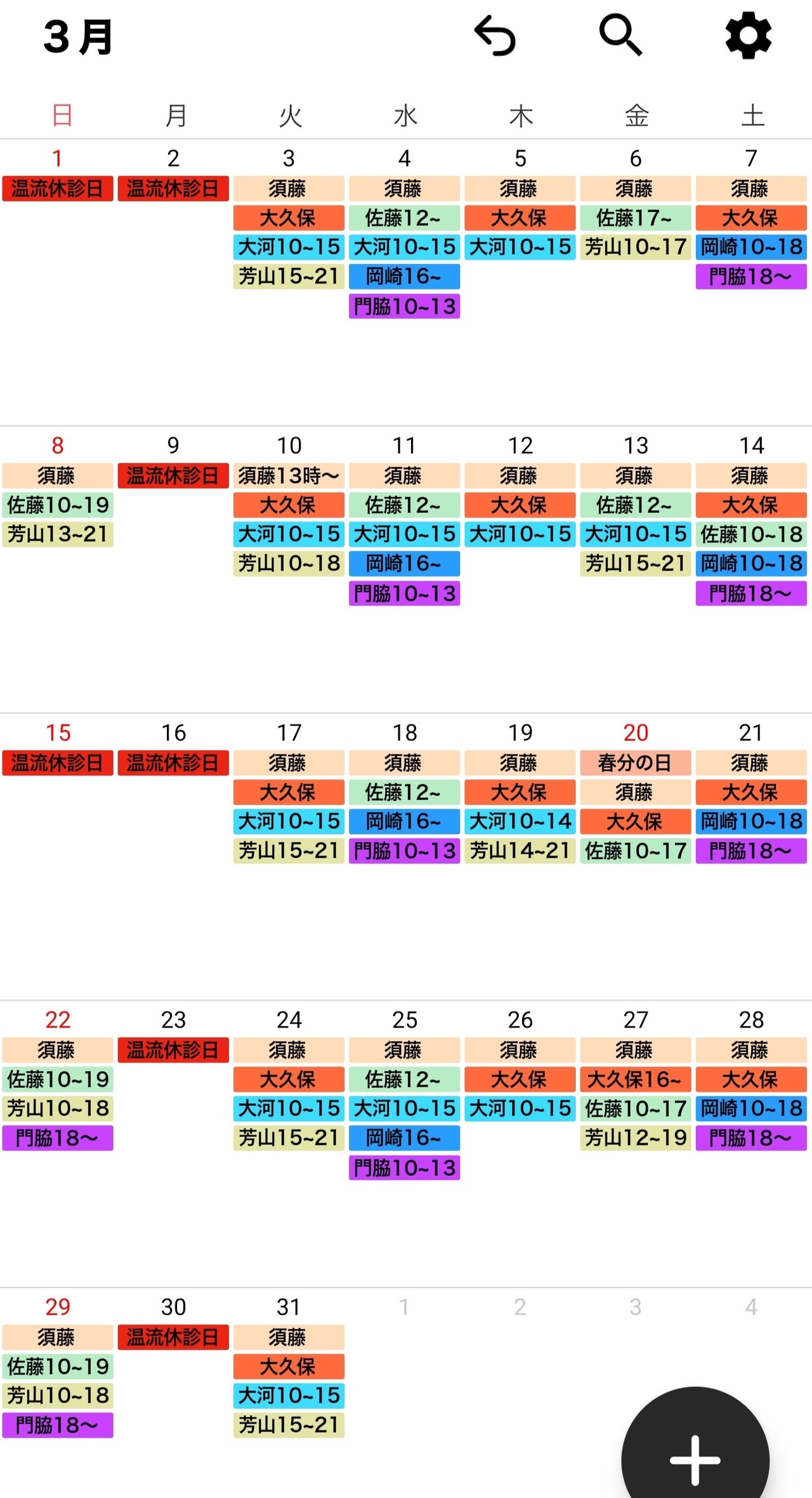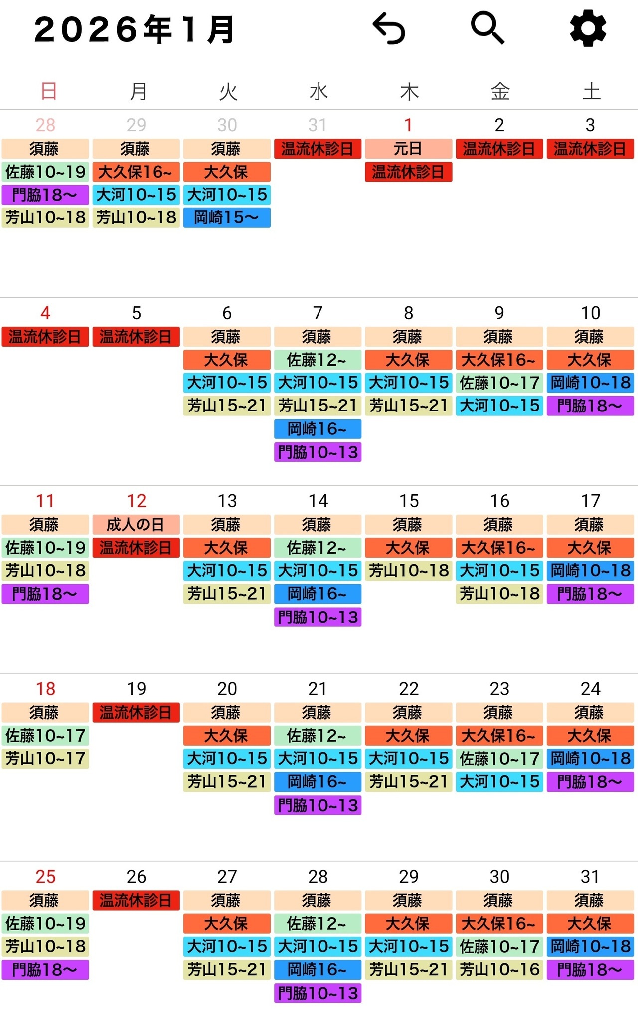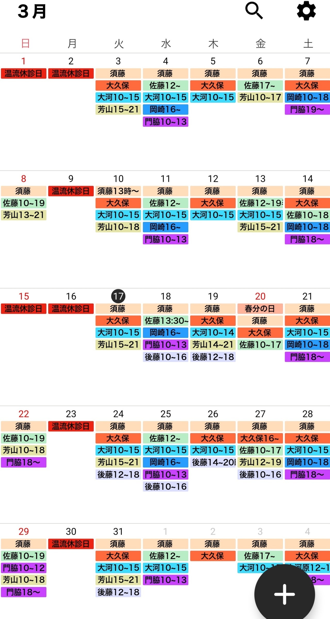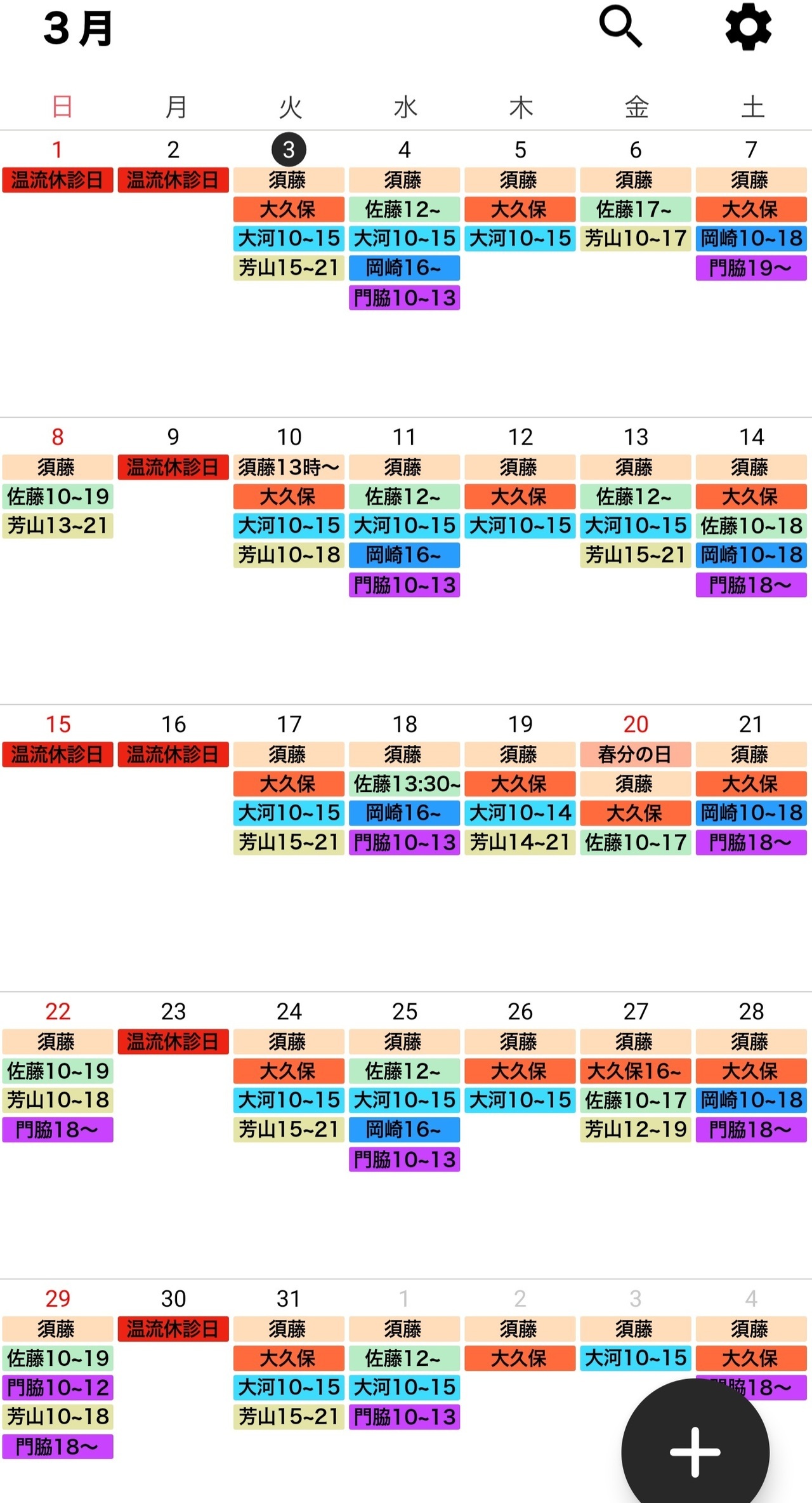 治療師のシフトは予告なく変更する場合がございます。どうぞ、ご了承ください。