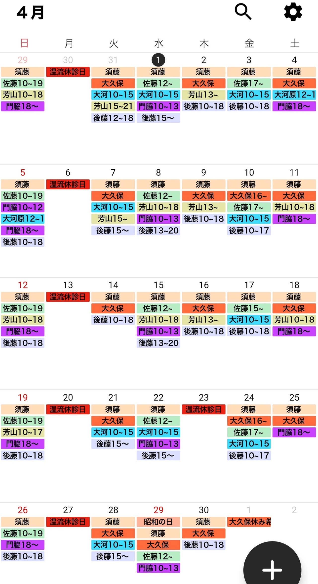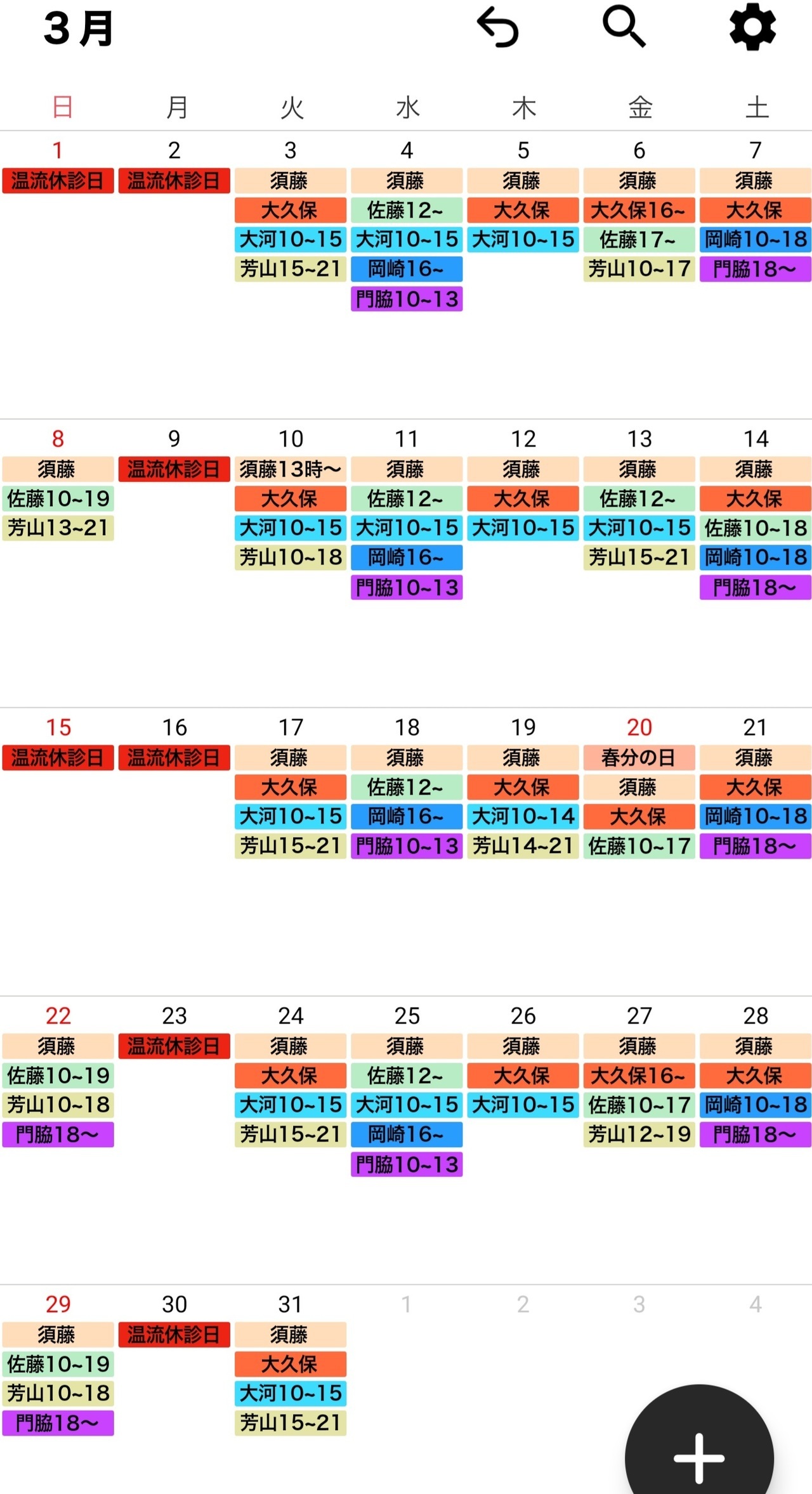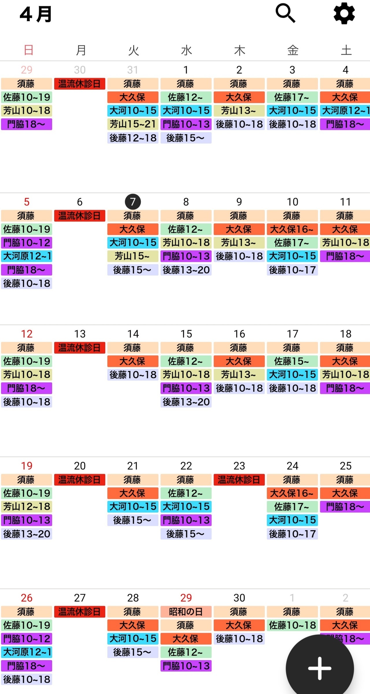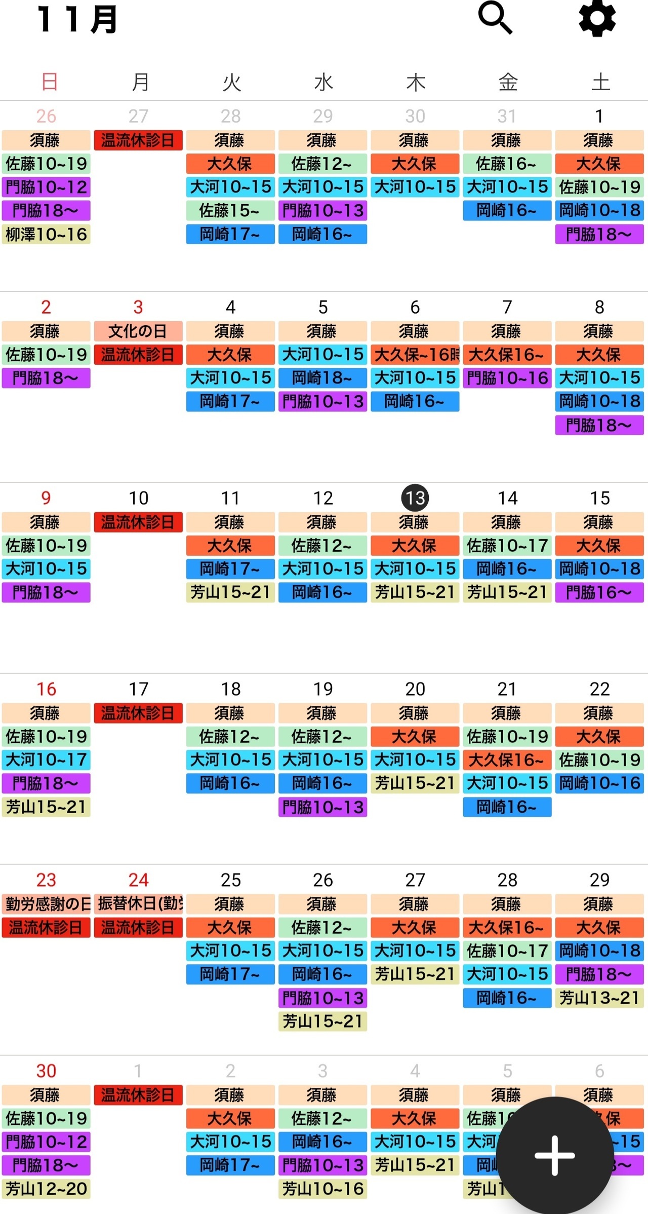 治療師のシフトは予告なく変更する場合がございます。どうぞ、ご了承ください。