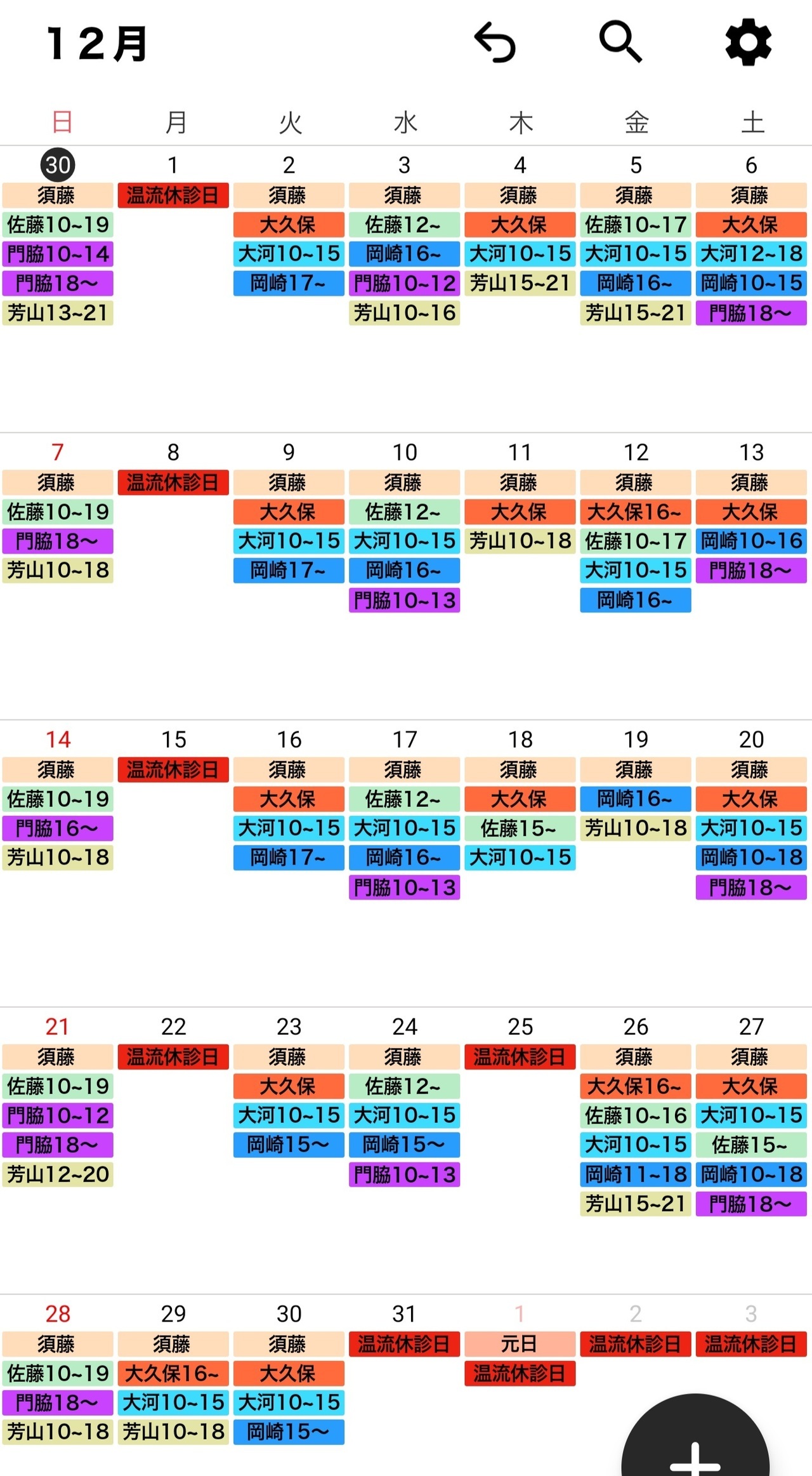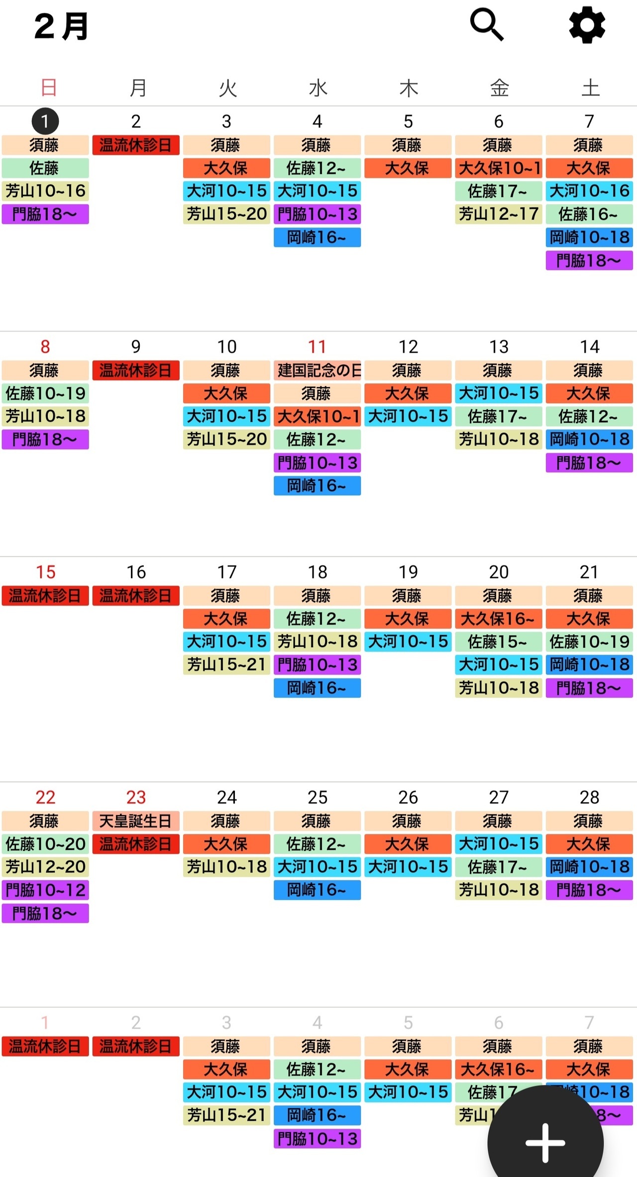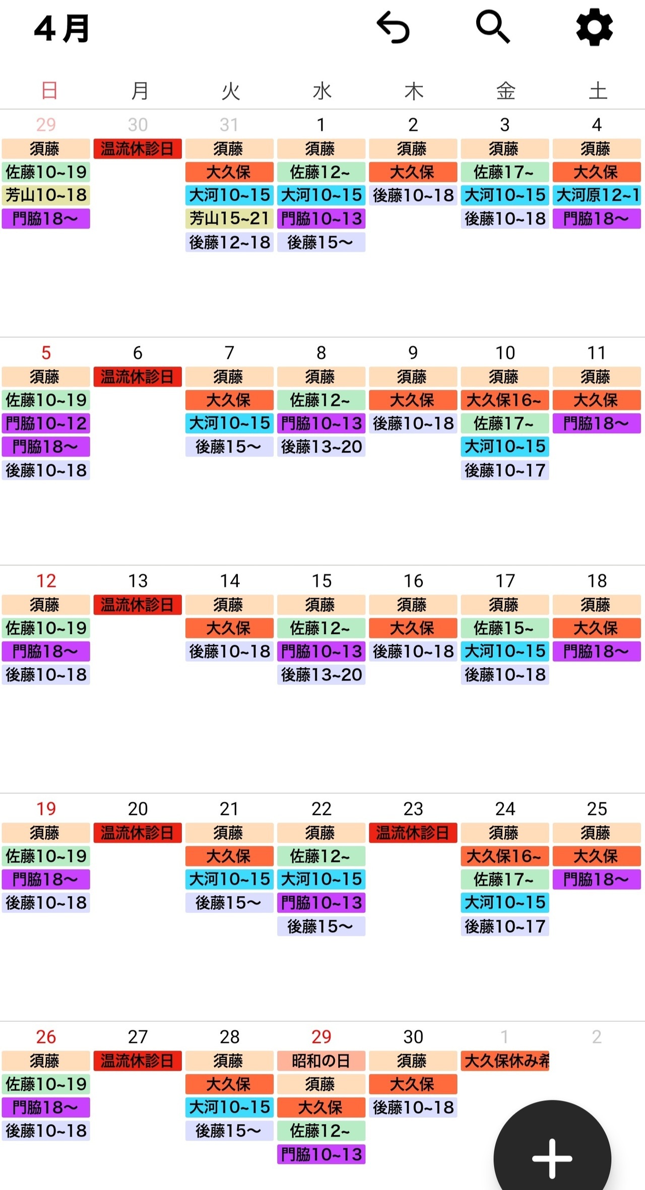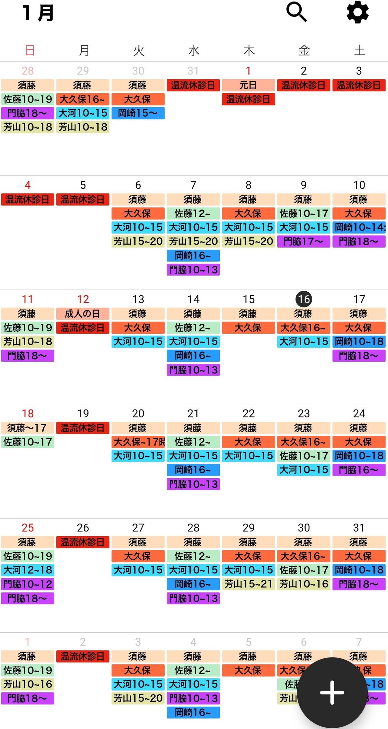治療師のシフトは予告なく変更する場合がございます。どうぞ、ご了承ください。