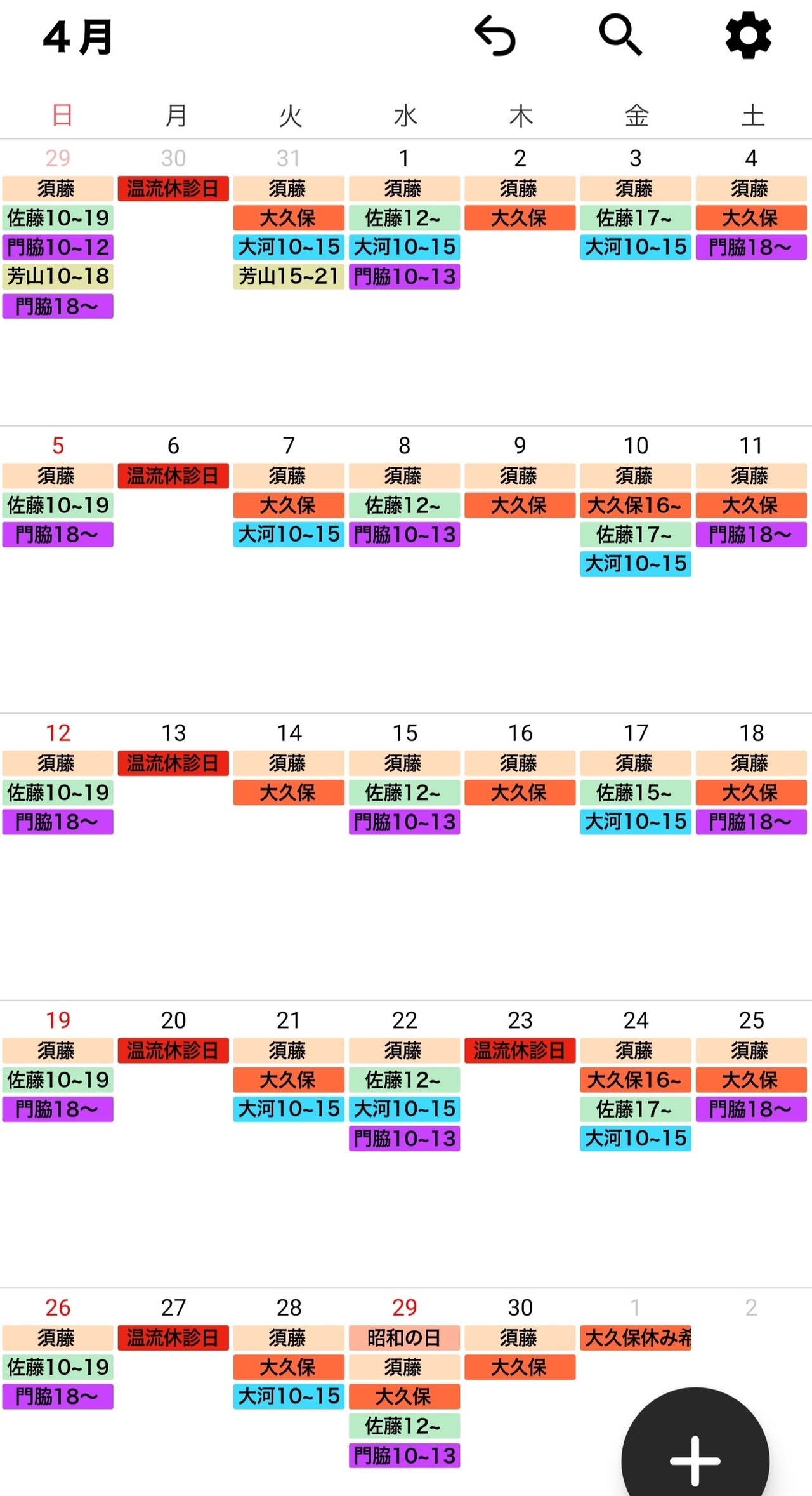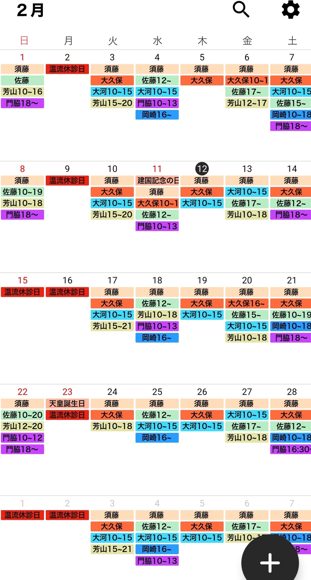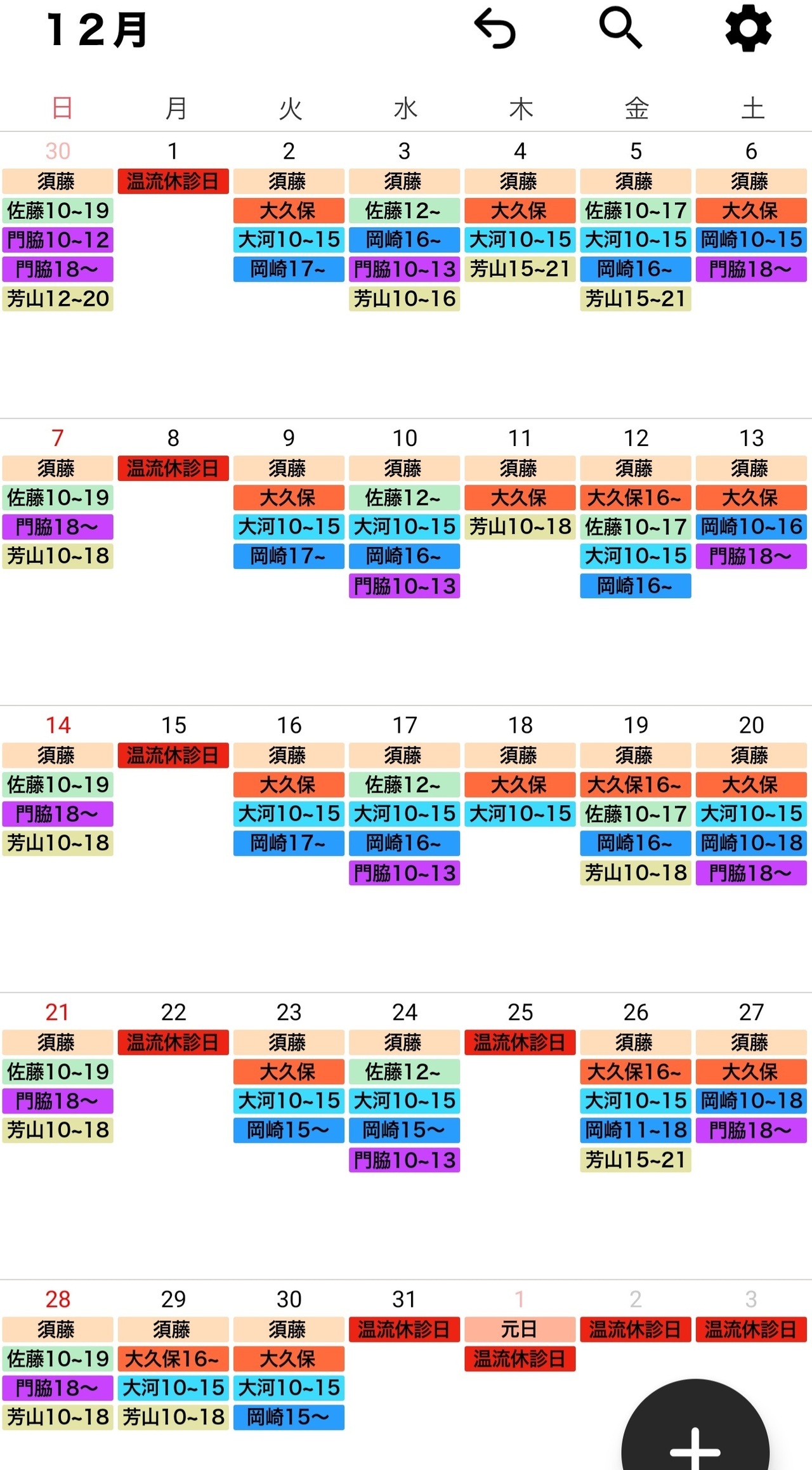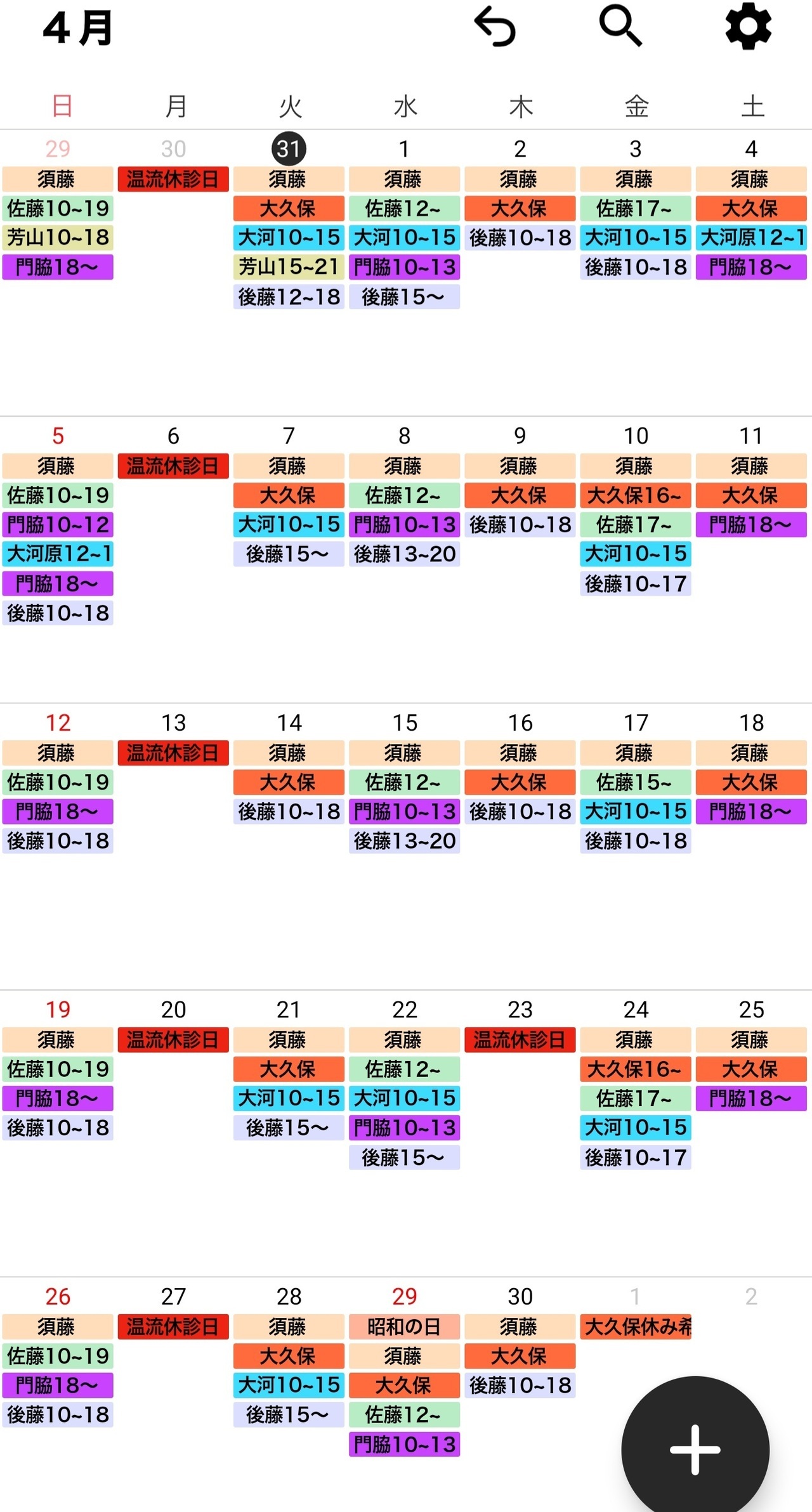 治療師のシフトは予告なく変更する場合がございます。どうぞ、ご了承ください。